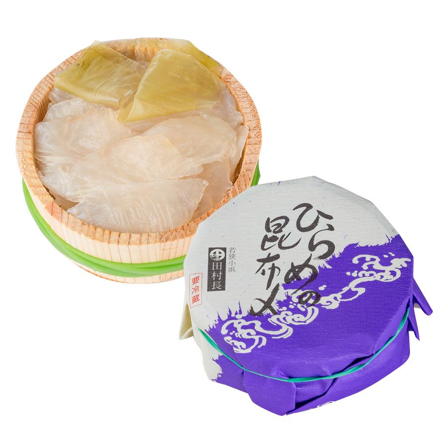 藩政時代、日本海を往来した北前舟が北海道の昆布を持ち帰りました。そして、その昆布で日本海の鱈を巻いて食べたのが、「昆布〆(昆布締め)」の始まりとされています。 魚の味を生かし、田村長伝統の技で昆布〆めとしてお届け致します。