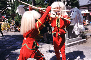 西津七年祭りの小松原川西地区から指導を受け、昭和33年から大太鼓を奉納する。棒振りは二人棒・三人棒・半棒があり、半棒の囃子には笛が加わる。